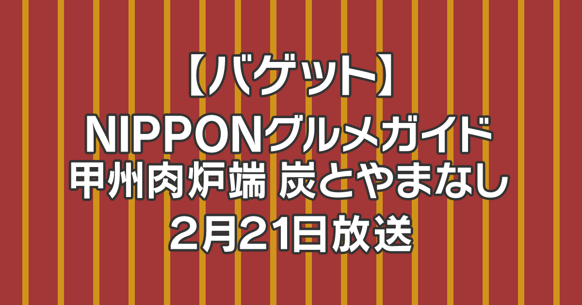 【バゲット】NIPPONグルメガイド 甲州肉炉端 炭とやまなし 2月21日放送