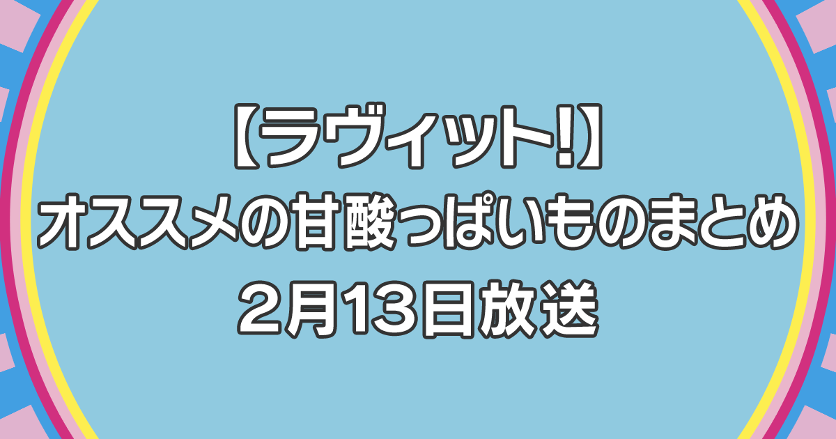 2023年2月13日放送のTBS系列「ラヴィット!」では、オススメの甘酸っぱいものを紹介していたので、紹介していた店舗・メニューをまとめます。