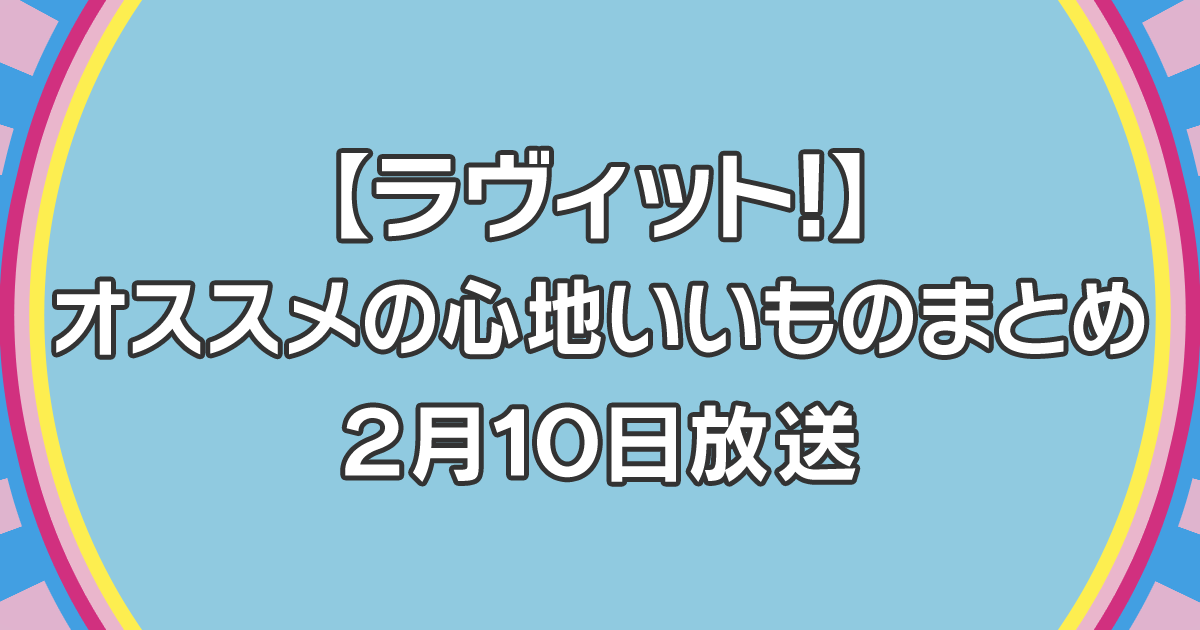 2023年2月10日放送のTBS系列「ラヴィット!」では、オススメの心地いいものを紹介していたので、紹介していた店舗・メニューをまとめます。