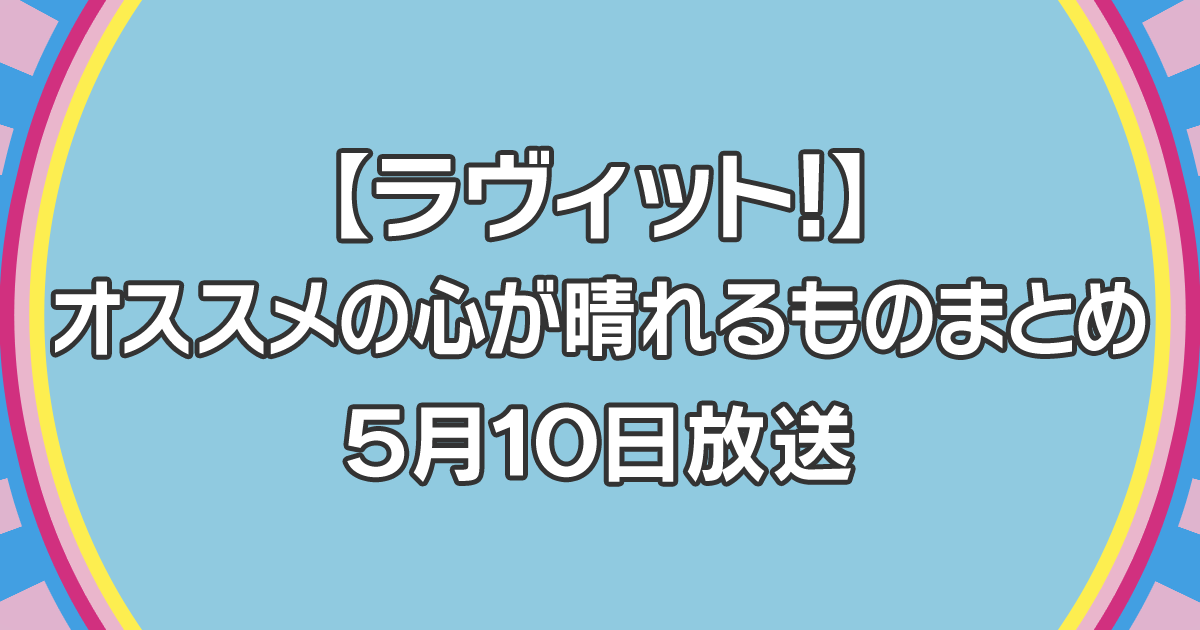 2023年5月10日放送のTBS系列「ラヴィット!」では、オススメの心が晴れるものを紹介していたので、紹介していたものをまとめます。