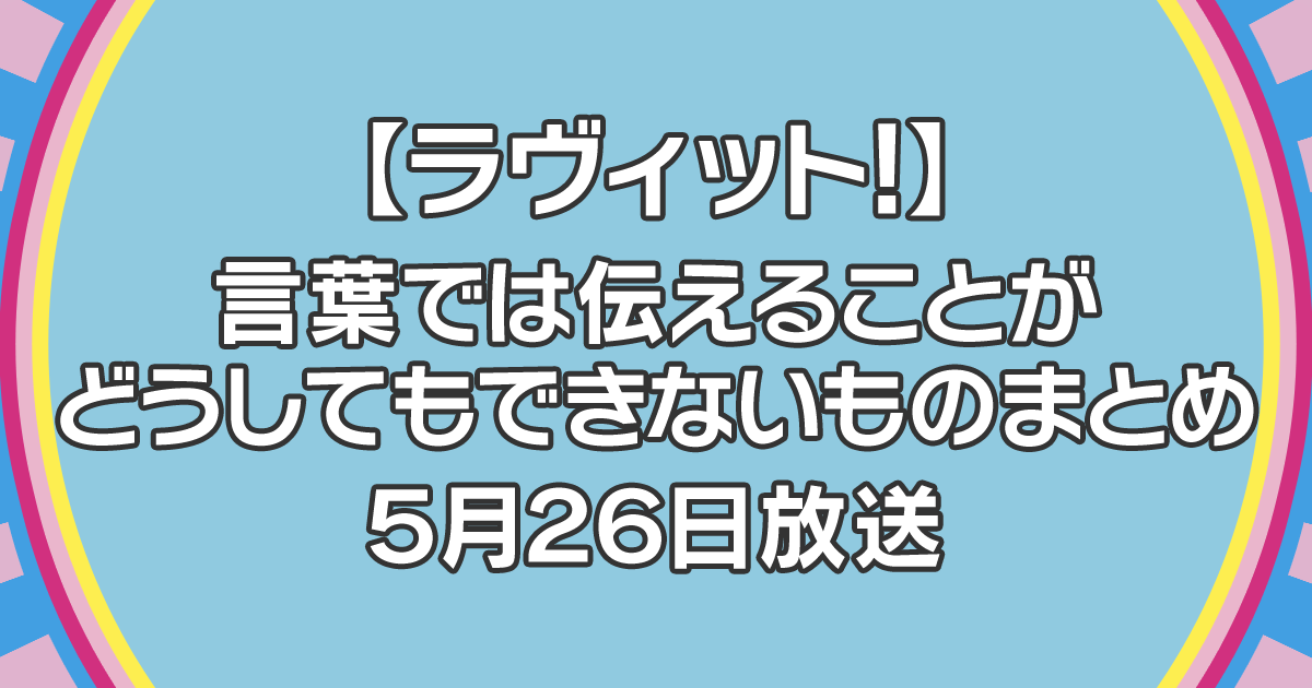 2023年5月26日放送のTBS系列「ラヴィット!」では、言葉では伝えることがどうしてもできないものを紹介していたので、紹介していたものをまとめます。