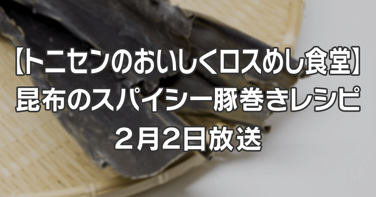 2023年2月2日放送のTBS系列「トニセンのおいしくロスめし食堂」では、出汁をとった後の昆布を有効活用しておいしいロスめしのレシピを紹介していたので、レシピをまとめます。
