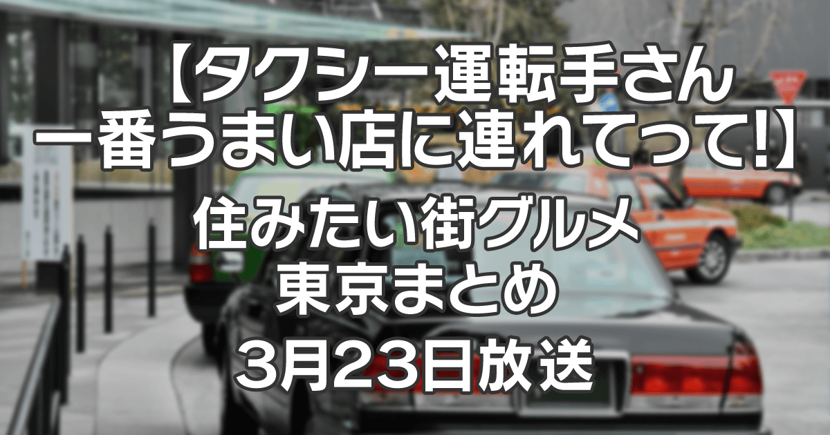 2023年3月23日放送のテレビ東京系列「タクシー運転手さん 一番うまい店に連れてって!」では、住みたい街&移住したい街グルメということで、住みたい街急上昇ランキングの駅で、タクシー運転手さんに聞き込み、お店を訪ねていました。