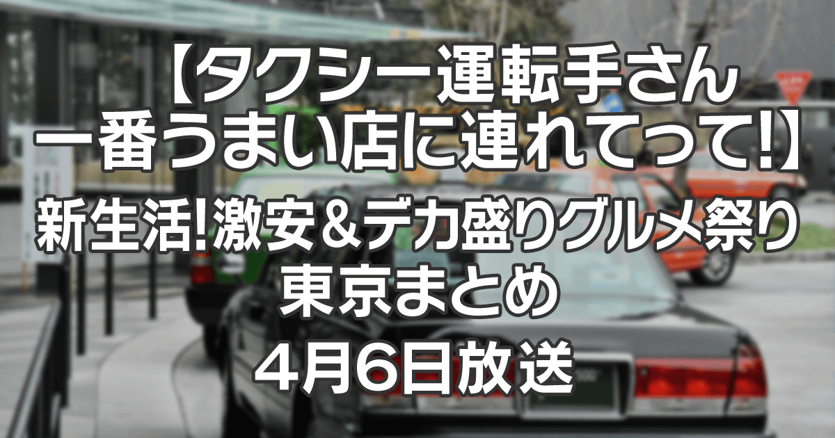 2023年4月6日放送のテレビ東京系列「タクシー運転手さん 一番うまい店に連れてって!」では、新生活!激安&デカ盛りグルメ祭りということで、大学生、社会人に人気の街で大捜索していました。